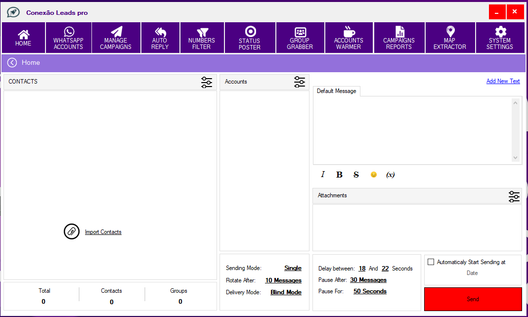 Nossa ferramenta foi criada para facilitar o seu dia a dia. Em poucos minutos, você já começa a fazer os seus primeiros envios no WhatsApp.
